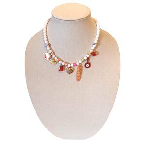 Handmade Beaded Necklace With White Beads & Assorted Fruit-Themed Charms Includi