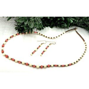 This set features a beautifully coordinated necklace and earring duo with coral, cream, and gold-colored beads. A versatile addition to any wardrobe.