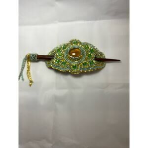 Handmade Beaded Ponytail Hair Accessory Green/Multi Tone Ponytail Beaded BoHo