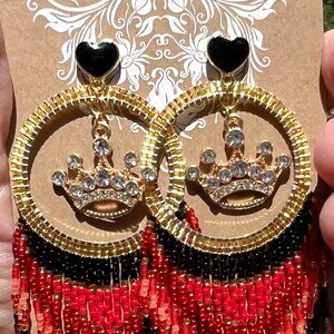 Handmade Beaded Queen Long Fringe Dangle Drop Lightweight Post Hoop Earrings