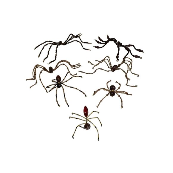 Handmade Beaded Spider Ornaments Set Of 7 Decor Figurines Beads Stones One Of A Kind from the estate of a Las Vegas artist/hypnotist