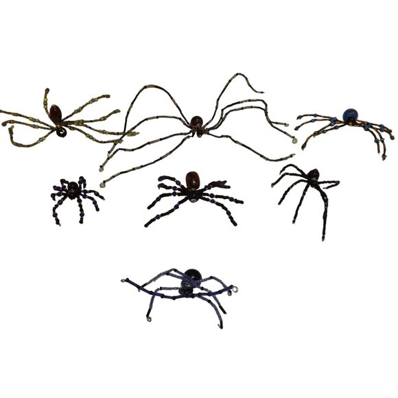 Handmade Beaded Spider Ornaments Set Of 7 Decor Figurines Beads Stones One Of A Kind from the estate of a Las Vegas artist/hypnotist