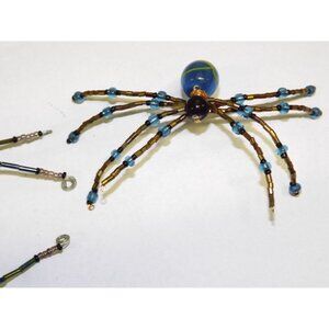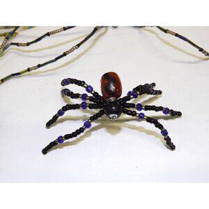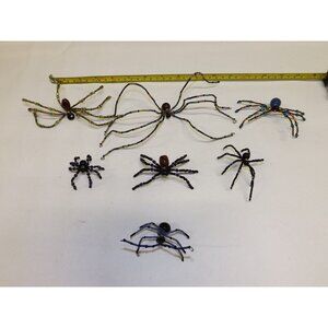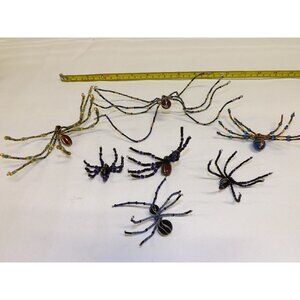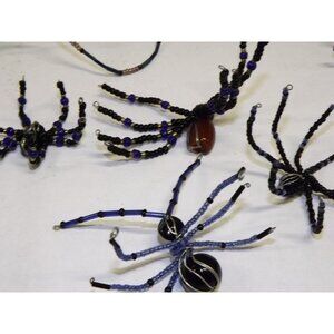 Handmade Beaded Spider Ornaments Set Of 7 Decor Figurines Beads Stones Ooak BagE