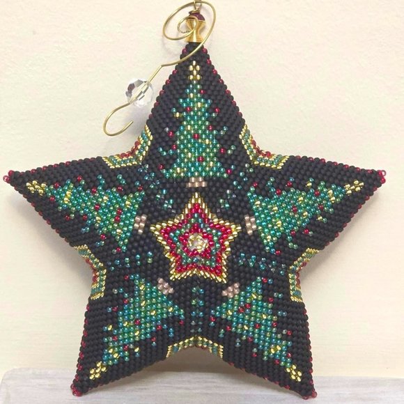Handmade Beaded Star, Miyuki Glass Beading Star Ornament, Evergreen Christmas