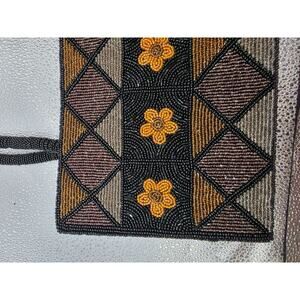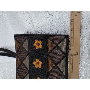 A sleek, handmade evening bag featuring intricate beaded floral patterns. Designed with a secure zippered closure and spacious lined interior, it combines style with functionality.
