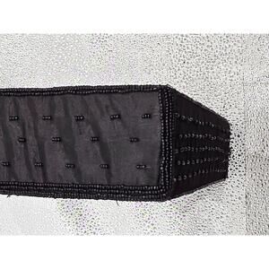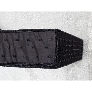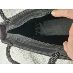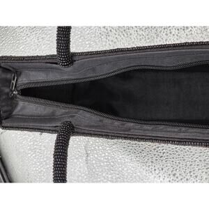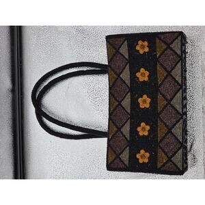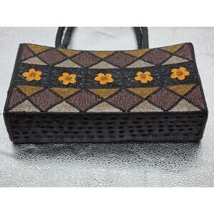 Handmade Black Beaded Floral Pattern Evening Bag With Dual Handles Zipper