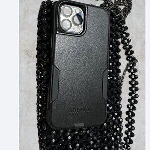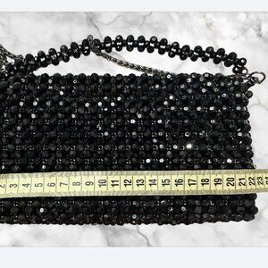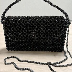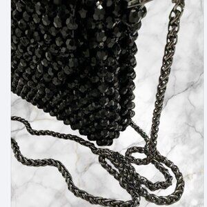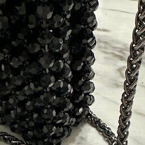 Handmade Black Beaded Shoulder Bag with Silver Chain Strap