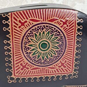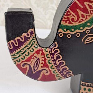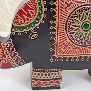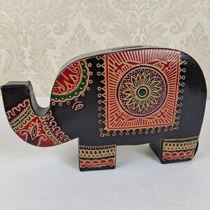 Keywords: elephant handmade coin piggy bank India mandala painted decor home office gifts kids children adults birthday holiday leather