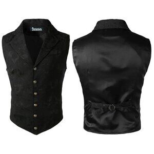 Handmade Black Men's Victorian Suit Gentleman Vest Steampunk Gothic Waistcoat
