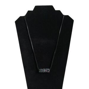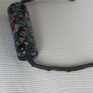 Handmade Black & Multicolored Polymer Clay Cylinder Bead Leather Cord Necklace