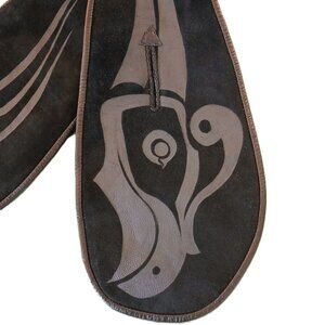 Black Shearling Keyhole Scarf with Inuit Eagle Motif (NWOT)