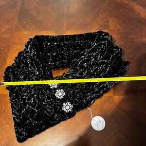 Handmade Black Velvet Crochet Infinity Scarf Rhinestone Snowflake Accents J&L