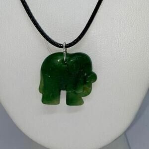 Black wax necklace with an elephant style pendant in center. Adjustable lobster clasp closure – silver-tone hardware. Elephant pendant ranges from jade, aventurine, amazonite, teal, emerald & jasper green.