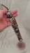 Handmade Black and Gray Floral Wristlet Keychain with Lavender Pompom