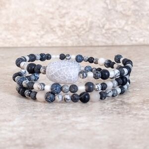Handmade Black and White Agate Beaded Wrap Bracelet