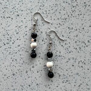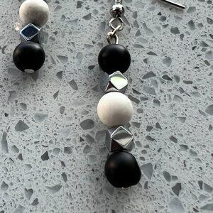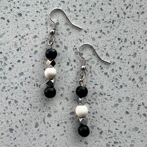 Beautiful and minimalistic white howlite and black beaded earrings. Bead sizes are 4mm round gemstone beads.