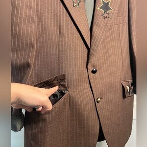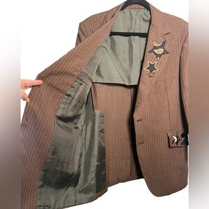 Gorgeous and unique custom blazer. Very boho western vibes, features sewn on stars in cool patterns, added button details, seen rolled cuffs. This is definitely a statement piece!