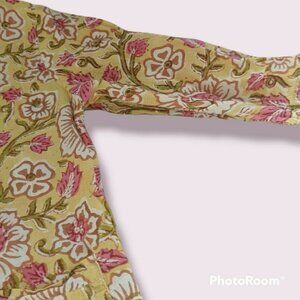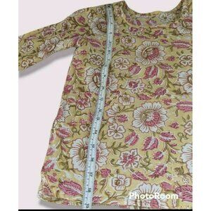 Beautiful light #yellow #cotton #tunic #top with large #floral #blockprint. #Pockets in the front. Sleeves come to the elbow. Beautiful and so comfy for the #summer. No stains or damage of any kind. No size tag but it fits like a 5. Please see pics for measurements. For reference this would be much like an #anokhi koki top.