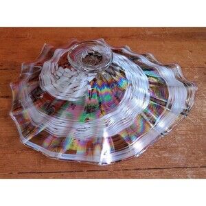 Handmade Blown Art Glass Bowl Ribbon Swirl Ripple Edge Brown Pearlescent Euc