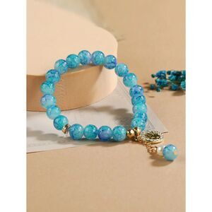 Handmade Blue Apatite Stretch Tree of Life Charm Bead Bracelet Goldtone Jewelry
