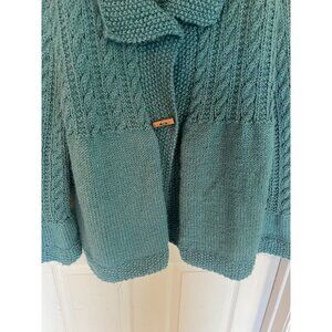 Handmade Blue Cable Knit Bell Sleeve Cardigan Sweater Size Medium