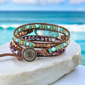 Embrace bohemian elegance with this handcrafted Blue Imperial Jasper wrap bracelet! πΏβ¨ Featuring vibrant turquoise, amethyst beads, and earthy tones, it's the perfect statement piece for any occasion. Whether you're dressing up or keeping it casual, this vintage-inspired bracelet adds a touch of effortless charm to your look. ππ