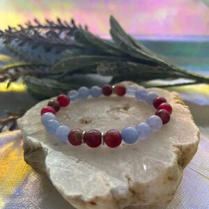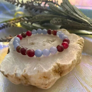 Handmade Blue Lace Agate + dyed pink & green quartz bracelet 💘