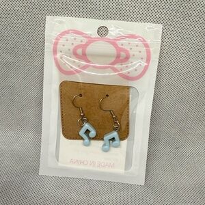 These are handmade by me Blue Music Note Earrings. The blue music note is a little under an inch high and a little under an inch wide. Please refer to photos for more accurate measurements and sizing. The earrings are made out of hypoallergenic iron and resin. They feature a rubber stopper on the back. Please refer to the video to see all of the beautiful details of these earrings.