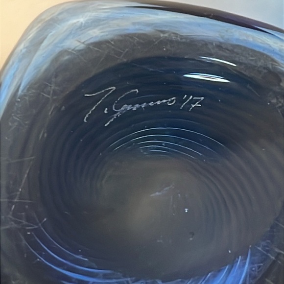 Handmade Blue Optic Squared Glass Tumbler Signed Dated 17