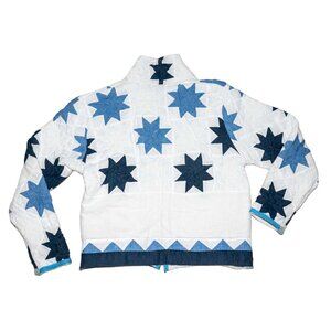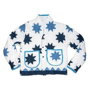 Handmade Blue Star Quilted Women's Jacket - Oversized M/L