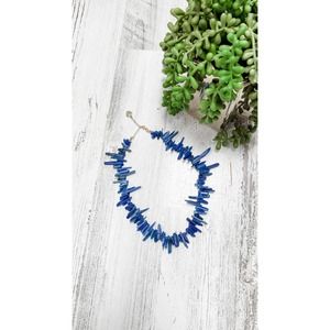 Only 2 available! Stunning handmade blue stone "lapis-like" & gold chain short necklace.