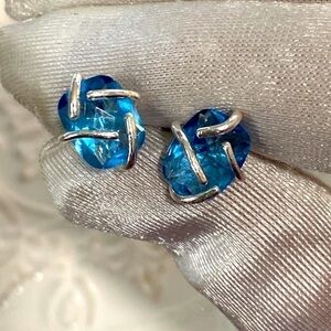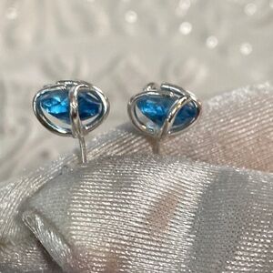 Blue Topaz Rectangular Cushion Gemstone Handmade Sterling Silver Earrings 8Ct Total