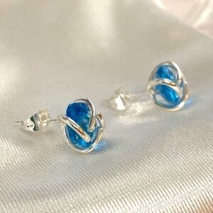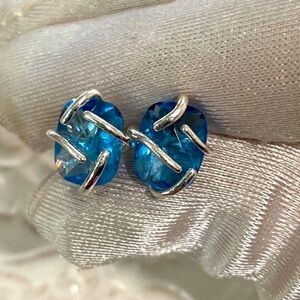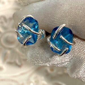 Handmade Blue Topaz Rectangular Cushion Gemstone Sterling Silver Earrings 8Ct