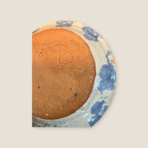 Handmade Blue & White Sponge Ware Pottery Candle Holder Signed BB