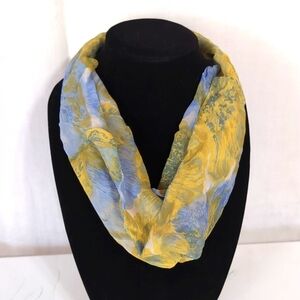Handmade Blue Yellow Silk Wrap Scarf Floral