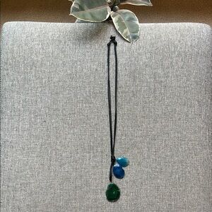 Gorgeous Boho Whimsigoth Blue and Green Stone Necklace with brown cord!