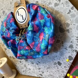 Handmade Blue and Pink Dolphins Scrunchie with Starfish Earrings
