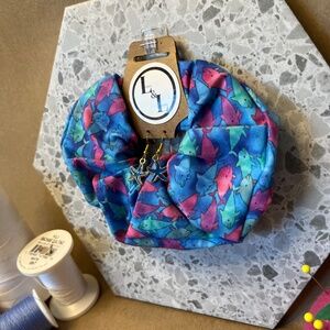 Dive into a sea of style with this vibrant handmade accessory set! The scrunchie features a colorful ocean-themed pattern with playful hues of blue, pink, and purple, perfect for adding a splash of personality to your outfit. Crafted from high-quality fabric, it’s soft, durable, and ideal for any hairstyle.