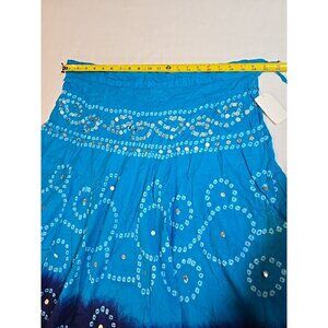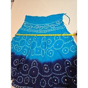 Handmade Blue boho midi skirt adjustable tie waist mirror sequins One Size New