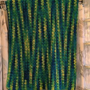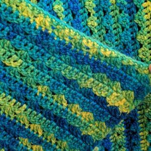 Handmade Blue Yellow Teal + Green Crochet Afghan Lap Throw Blanket