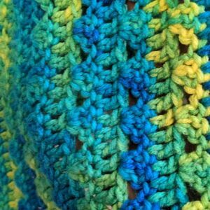 Bright and cheerful crocheted lap blanket.