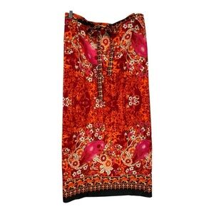 Bohemian Floral Parrot Print Maxi Skirt Red Orange Pink Drawstring Waist