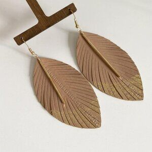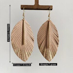 Handmade Bohemian Lightweight Soft Genuine Leather Feather Leaf Dangle Drop Earr