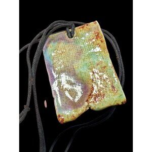 This handmade Bohemian necklace features a vibrant rainbow ceramic sun print pendant. Perfect for adding a touch of artistic flair to any outfit, it is a unique accessory for all occasions.