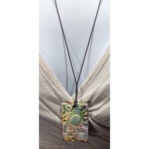 Handmade Bohemian Rainbow Ceramic Sun Print Pendant Necklace