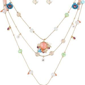 Handmade Boho Beaded Necklace Women's Layered Heart Pendant Summer Jewelry