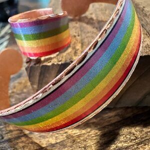 Discover the perfect blend of artistry and fashion with our Handmade Boho Copper Wide Cuff Bracelet. This stunning accessory not only showcases a unique diamond cut rainbow pride design but also elevates any outfit with its vibrant colors and elegant craftsmanship.