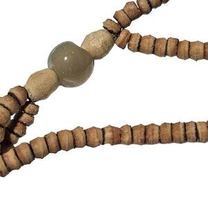 Handmade Boho Wooden Beaded Agate Centerpiece Necklace Earthy Natural Jewelry