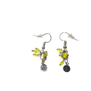 Handmade Boho Yellow Seed Bead Drop Earrings with Rhinestone Charm Jewelry