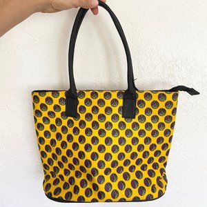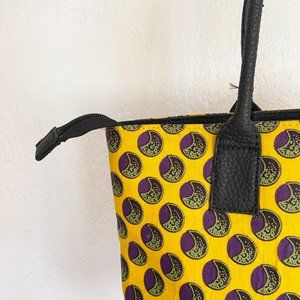 Color: Yellow w/ Purple & Sage Print Circles and Black Leather/Interior